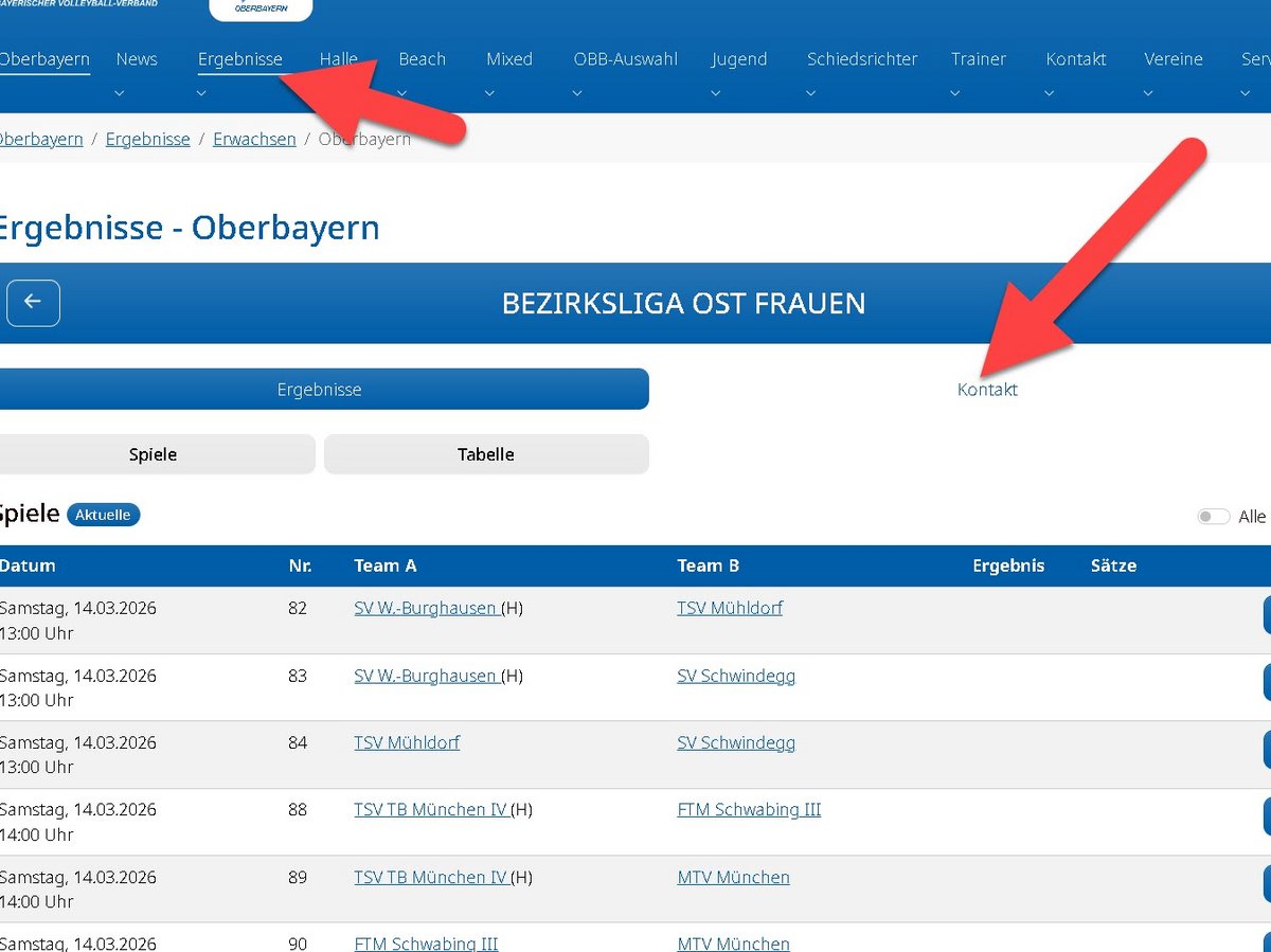 Den Staffellleiter für deine Liga findest du direkt im Bereich Ergebnisse. Gehe dann wie folgt vor: