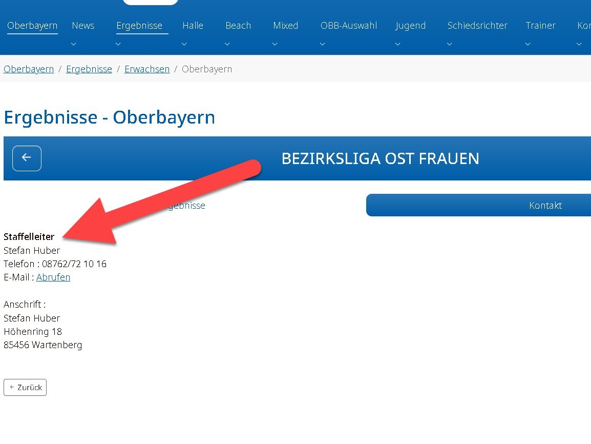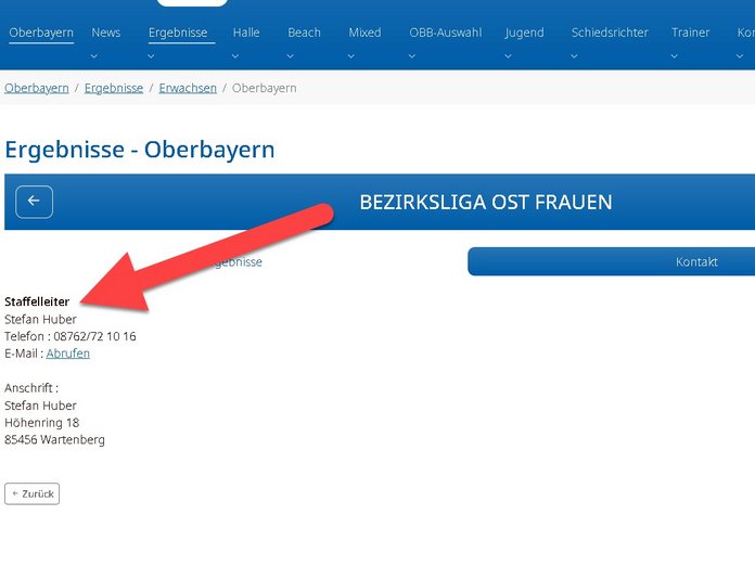 - Die Kontaktdaten des Staffelleiters sind jetzt zu sehen. (Bild 2)